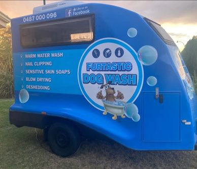 FURtastic Dog Wash Byford comes directly to your home with a fully equipped mobile dog wash trailer, providing convenient, professional care right at your doorstep.