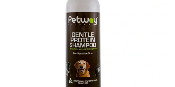 GENTLE PROTEIN SHAMPOO A naturally based shampoo contains Baking Soda as a deodorizer to eliminate doggy smells and Aloe Vera a natural protein to moisturize, hydrate and retexture the skin. Revitalizes the coat appearance and adds shine and lustre. Thoroughly cleanses the coat and skin and leaves a low allergen tropical coconut fragrance.